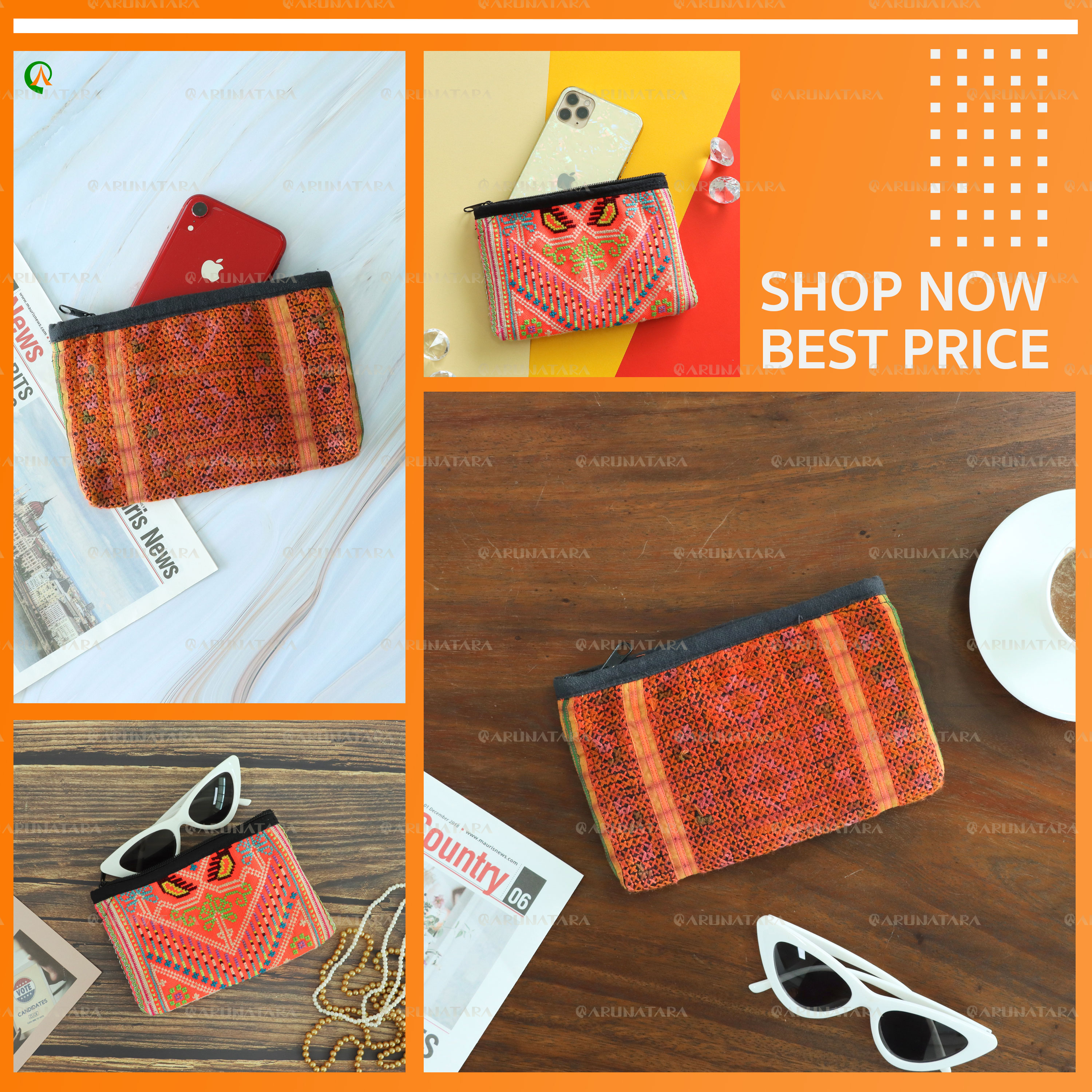 ∙ กระเป๋าใส่เหรียญลายพื้นเมือง ขนาดพอเหมาะมือ ใส่ได้ทั้งเครื่องสำอาง มือถือ และของใช้จิปาถะขนาดเล็ก